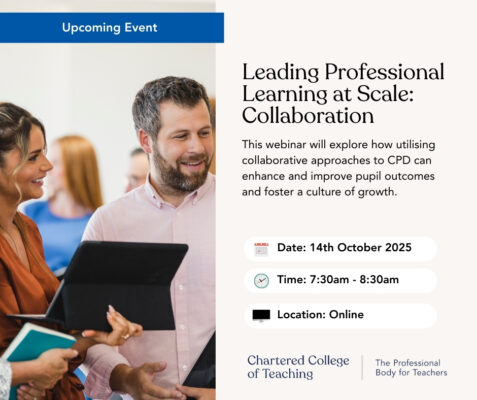 At the Chartered College of Teaching we know that professional development is not an add on. It is essential. It builds teacher confidence, improves student outcomes and supports retention. This October we want to help you access high quality evidence informed CPD that strengthens your practice, inspires your teaching and supports your pupils’ learning.